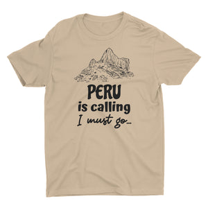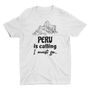 There is something special about being able to visit Peru. Among all of the places to see, Machu Picchu is near the top of the list for many. Anyone who is able to travel to Cuzco and see the city the Incas built, whether it's to hike the Inca trail or just to take in the incredible sights, comes back with an incredible experience. This t-shirt, featuring Machu Picchu and "Peru is Calling - I Must Go," is perfect for anyone who wants to let others know about their next adventure.