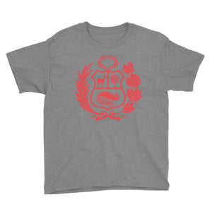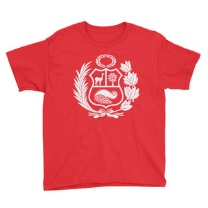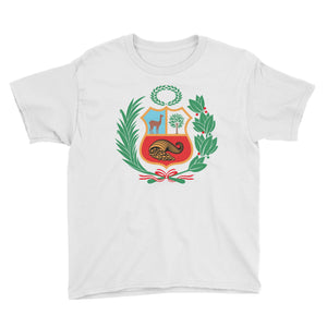Even if Peruvian parents have their kid in another country, their kid is born with Peruvian roots. Have your kid show his Peruvian roots with this short sleeve t-shirt, featuring the Peruvian Escudo. This is a youth size shirt and can be worn by both boys and girls.